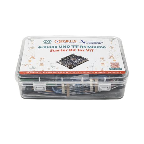 Arduino UNO EK एक R4 Minima Starter Kit for VIT boasts the RA4M1 microprocessor from Renesas, delivering increased processing power, expanded memory, and additional peripherals. And the best part? It stays true to the reliable UNO form factor and operates at a practical 5 V voltage. Brace yourself for an upgrade like no other with the Arduino UNO R4 Minima.