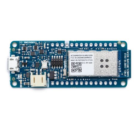 Official Arduino MKR1000 WIFI without headers ABX00004 has been designed to offer a practical and cost effective solution for makers seeking to add Wi-Fi connectivity to their projects with minimal previous experience in networking. It is based on the Atmel ATSAMW25 SoC (System on Chip), that is part of the Smart Connect family of Atmel Wireless devices, specifically designed for IoT projects and devices. The Official Arduino MKR1000 combines the functionality of the Zero and the Wi-Fi Shield. This is an ideal board for makers that want to design IoT projects with minimal previous experience in networking. It features the Atmel ATSAMW25 SoC that is part of the Smart Connect family of Atmel Wireless devices that are specifically designed for IoT projects and devices. The ATSAMW25 is composed of three main blocks; The SAMD21 Cortex-M0+ 32-bit low power ARM MCU, the WINC1500 low power 2.4 GHz IEEE 802.11 b/g/n Wi-Fi, and the ECC508 Crypto Authentication. The MKR1000 includes a Li-Po charging circuit that allows it to run on battery power or external 5V charging the Li-Po battery while running on external power, where switching sources is automatically done.